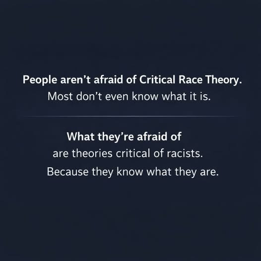 I first saw a version of this line attributed to writer John Pavlovitz. In that original phrasing, it named “Republicans”: “Republicans are not afraid of Critical Race Theory… They’re afraid of theories critical of racists…”I disagreed with the partisan framing. Racist beliefs and racist reflexes don’t belong to one party, and I’m not trying to turn a serious issue into a team sport.